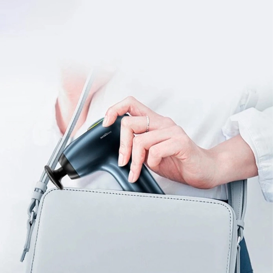 Масажер має ергономічний та легкий дизайн. Вага всього 448 грамів дозволяє легко носити його з собою в сумці або косметичці, а його компактні розміри дозволяють використовувати його в будь-який час і в будь-якому місці - під час шопінгу або на роботі.