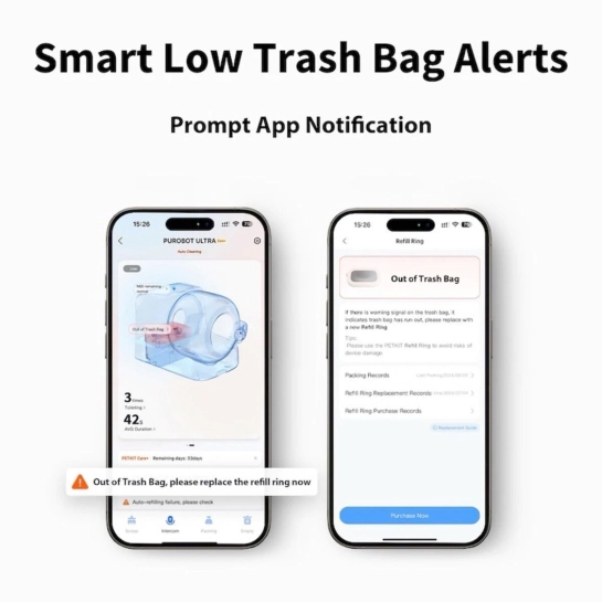 Спеціалізоване кільце для автоматичного пакування відходів, розроблене виключно для розумного туалету Purobot Ultra Cat Litter Box. Це інноваційне рішення являє собою багатошарову систему герметичного пакування, яка забезпечує безконтактну утилізацію кішачих відходів з повним контролем запахів.