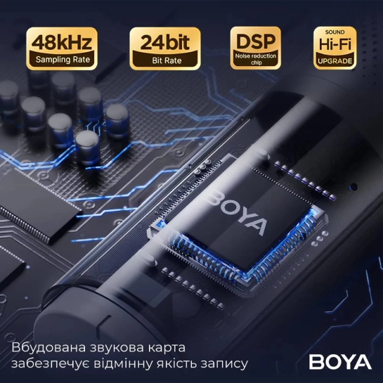 BOYA K9 поєднує в собі сучасні технології та елегантний дизайн. Він оснащений RGB-підсвічуванням, яке додає стиль вашому робочому простору та створює особливу атмосферу під час запису.