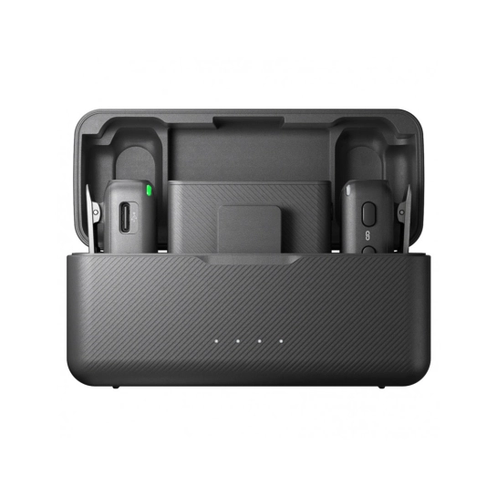 Завдяки чохлу для зарядки, що входить в комплект, ви зможете менше турбуватися про рівень заряду батареї. Приймач та передавачі можна заряджати у чохлі, щоб забезпечити до 15 годин роботи без обмежень.