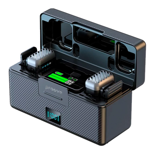 У комплекті йде зарядний кейс із ємністю 800мАч, що дозволяє швидко підзарядити мікрофони. Легка вага та компактні розміри роблять пристрій зручним для повсякденного використання. Завдяки бездротовому підключенню та універсальним роз'ємам мікрофон підходить для блогерів, журналістів та онлайн-трансляцій.