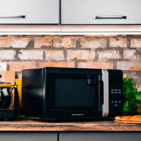 Мікрохвильова піч GRUNHELM 23MX823-B виконана в стильному чорному кольорі, тому модель стане відмінним доповненням в будь-якому інтер'єрі. Для зручного користування передбачений таймер, блокування роботи з відкритими дверцятами.