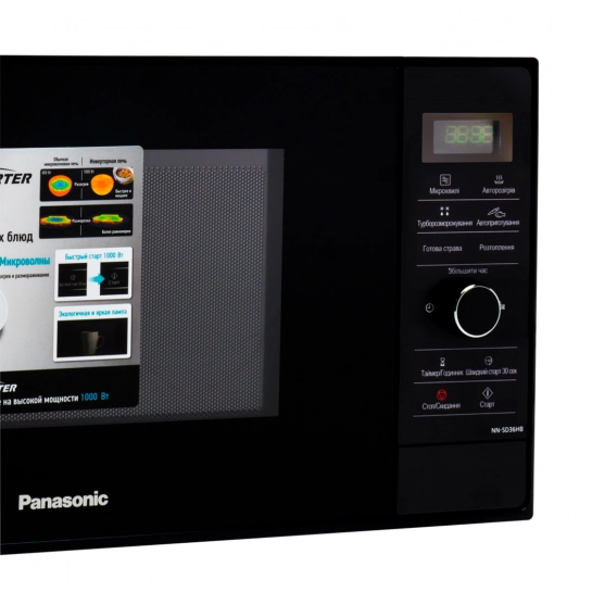 Технологія інверторного турборозморожування (Panasonic Inverter Turbo Defrost) забезпечує безперервну подачу мікрохвиль на різних потужних режимах.