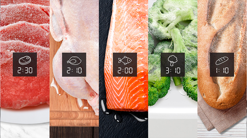 Швидко розморожуйте заморожену їжу. У меню є 5 варіантів часто використовуваних продуктів: м'ясо, птиця, риба, овочі та хліб. Просто виберіть тип та вагу їжі, і вона обчислить оптимальний час розморожування. Завдяки оптимальній програмі потрібно менше часу для підготовки інгредієнтів, зберігаючи поживні речовини.