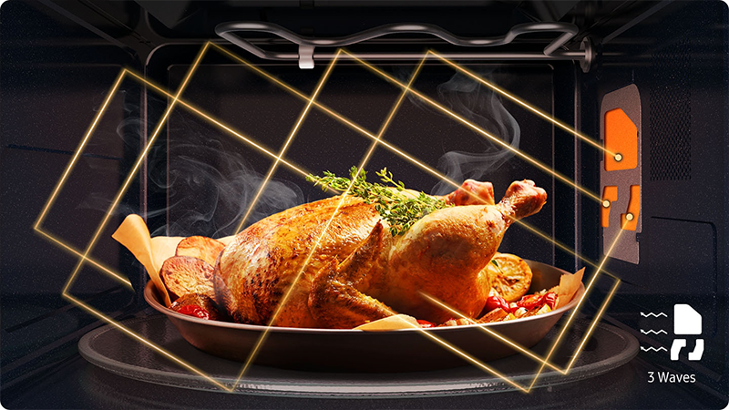 Переконайтеся, що все, що ви готуєте від піци до теплого молока, готується належним чином. Система потрійного розподілу розподіляє мікрохвилі у 3 напрямках, таким чином вони досягають кожного куточка та проникають у їжу у кількох напрямках. Це гарантує, що страва готується копітко та помірно.