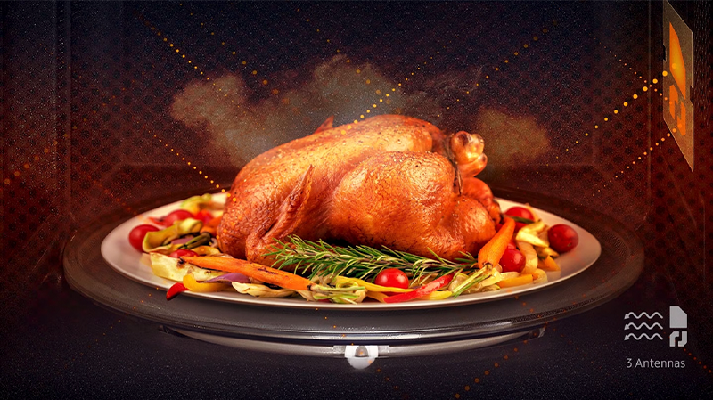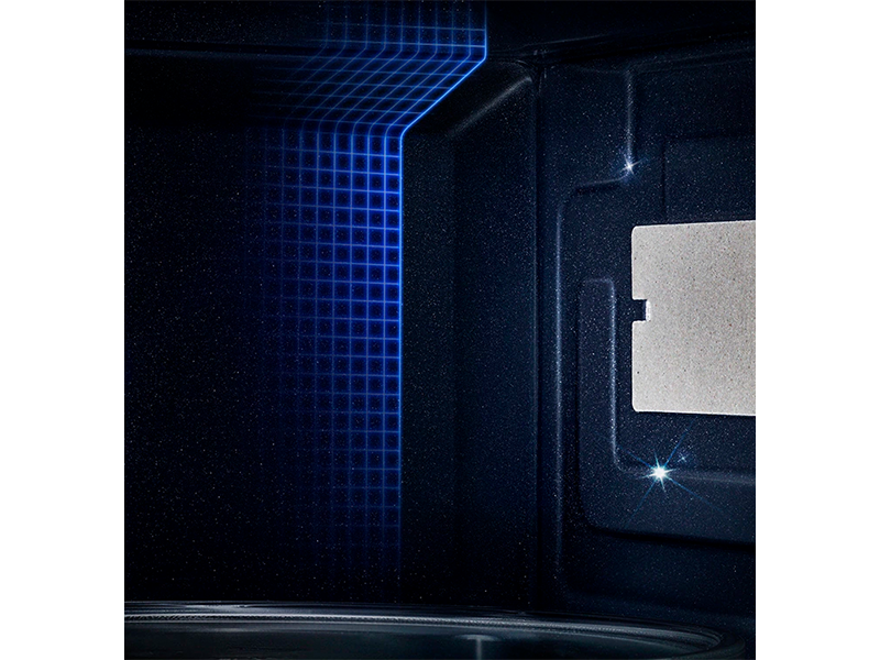Унікальна система потрійного розподілу мікрохвиль дозволяє рівномірно проникати у блюдо з усіх боків. Завдяки цьому страви готуються помірно.