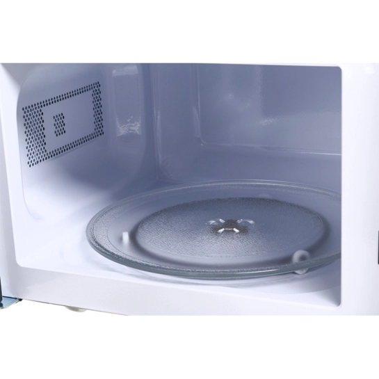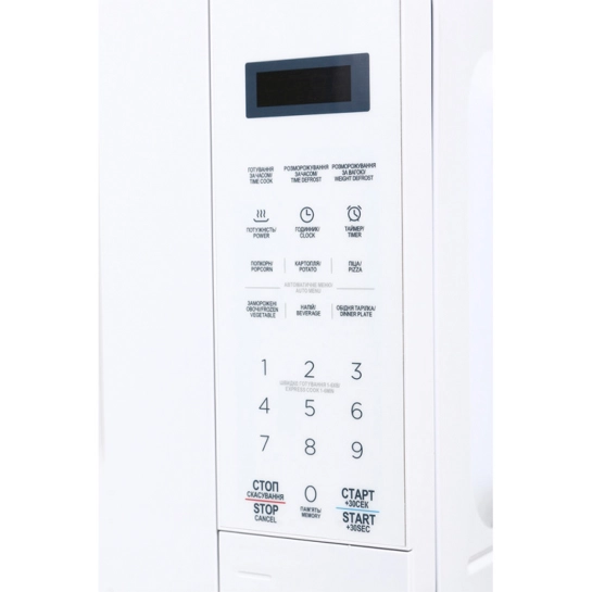 Мікрохвильова піч соло об'ємом 20 л, емальованим внутрішнім покриттям та вихідною потужністю 1050 Вт, споживана потужність складає 700 Вт. Електронне управління з кнопковими перемикачами. Передбачено режими автоматичного розігріву, розморожування, а також шість спеціальних програм приготування для картоплі, напоїв, овочів, піци та попкорну. Додатково є таймер, дверцята відчиняються за допомогою кнопки.