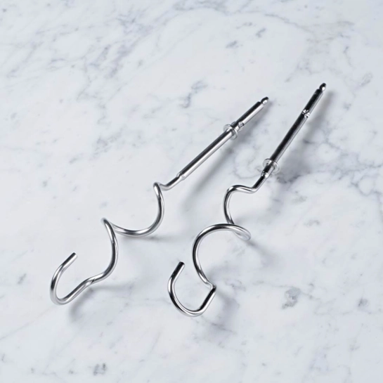 Корпус пристрою виконаний із міцного та легкого пластику, який зручно лежить у руці та забезпечує комфорт при використанні навіть протягом тривалого часу. У комплект входять два види насадок: віночки для збивання та гаки для тіста. Вони легко кріпляться та знімаються завдяки зручному механізму. Насадки виготовлені з високоякісної нержавіючої сталі, що гарантує довговічність та простоту догляду.