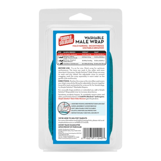 Багаторазова гігієнічна підкладка-протектор, спеціально розроблена для кобелів та забезпечує надійний захист від небажаних міток та проблем з нетриманням. Simple Solution Washable Male Wrap є економічним та екологічним рішенням для підтримки чистоти в будинку при утриманні кобелів з особливими потребами.