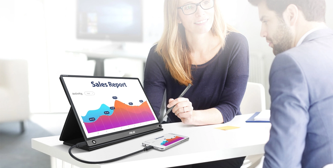 ZenScreen Go MB16AHP - ідеальне рішення для мобільних професіоналів. Він легко підключається до ноутбуків або смартфонів через USB-C або micro HDMI , що дозволяє миттєво демонструвати презентації, звіти або документи клієнтам та колегам.