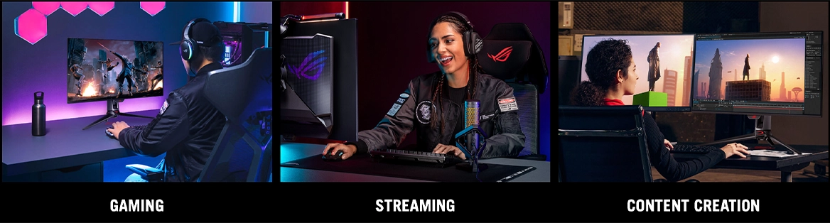 ROG Swift OLED PG32UCDMZ підходить не тільки для ігор, але і для стрімінгу та створення контенту. Висока точність кольору та роздільна здатність 4K UHD дозволяють комфортно працювати з будь-якими візуальними проектами.