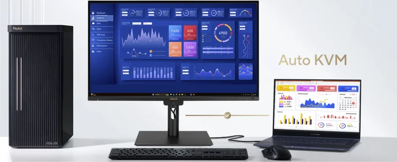 Вбудована функція Auto KVM дозволяє зручно й без зусиль перемикатися між двома підключеними до монітора ноутбуками або ПК, використовуючи їх лише з одним комплектом клавіатури та миші.