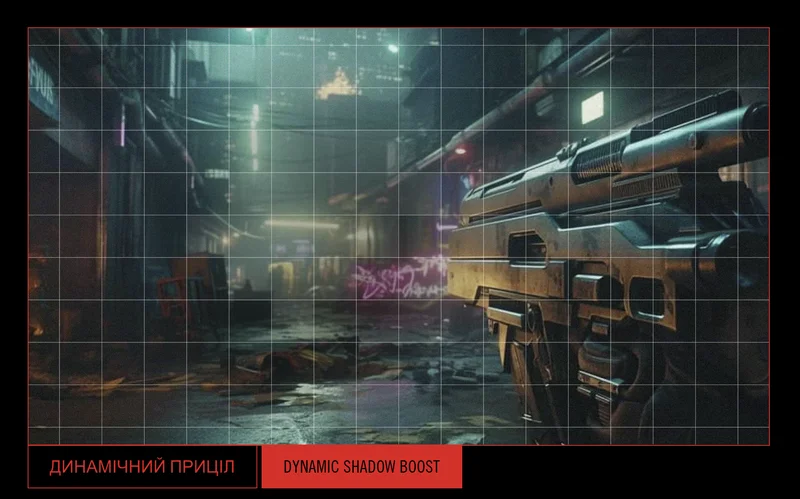 Завдяки технології GamePlus що працює на основі штучного інтелекту, програмне забезпечення монітора аналізує сцену на екрані в режимі реального часу й коригує перехрестя GamePlus для підвищення точності прицілювання. Крім того, функція Dynamic Shadow Boost освітлює темні ділянки сцен, не засвічуючи світлі, даючи перевагу над супротивниками.