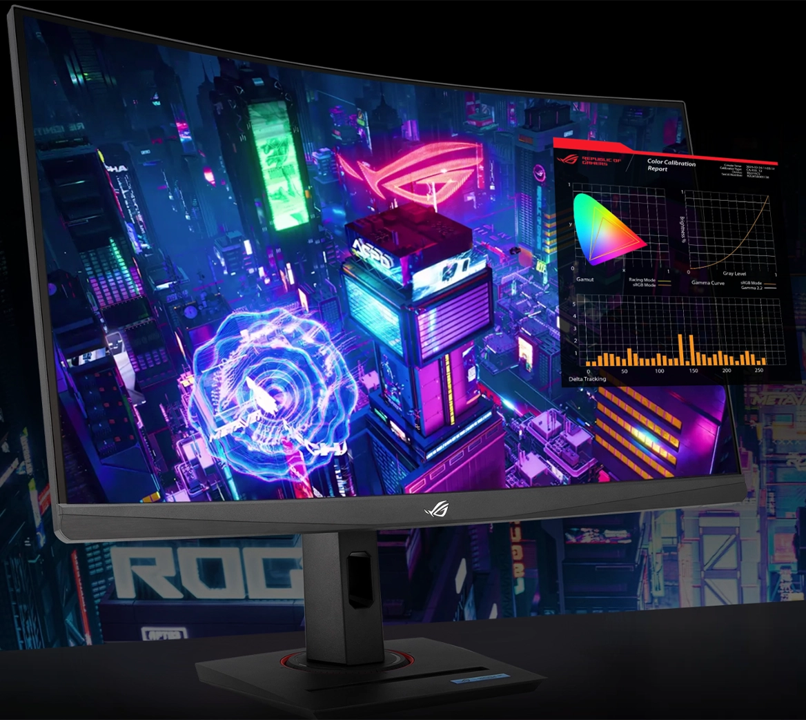 ROG Strix XG32WCS оснащений 32-дюймовою вигнутою панеллю 1500R , яка охоплює поле зору та створює ефект глибокого занурення. Тонкі рамки та фірмовий дизайн ROG підсилюють атмосферу сучасного геймінгу.
