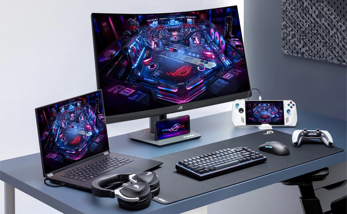 XG32WCS оптимізовано для використання з ПК, ноутбуками та консолями. Великий вигнутий екран ігрового рівня чудово поєднується з периферією ROG, забезпечуючи універсальність та комфорт як для роботи, так і для розваг.