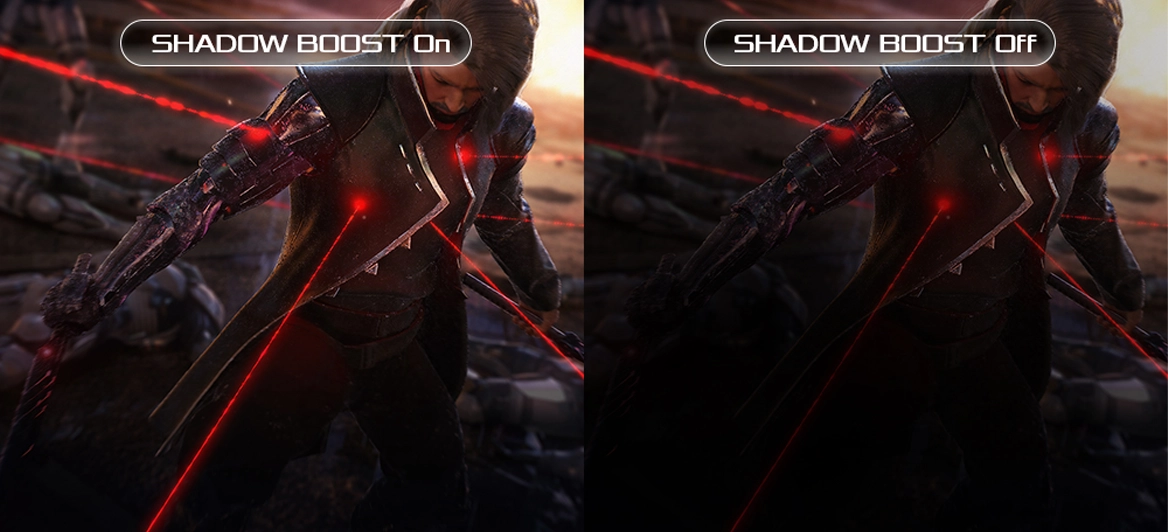 Функція Shadow Boost освітлює темні області, не пересвічуючи яскраві – ідеально для шутерів та сцен з низькою освітленістю.