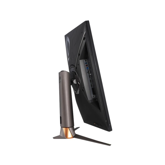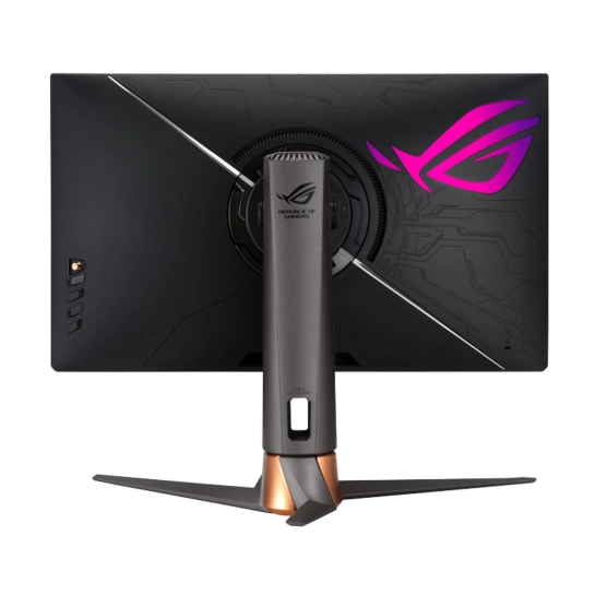 ROG Swift PG27UQR має стильний і агресивний дизайн, характерний для серії Republic of Gamers . Ергономічна підставка з металевими елементами, гравіювання на задній панелі та підсвічування ROG Aura Sync підкреслюють ігровий характер та преміальну якість пристрою.