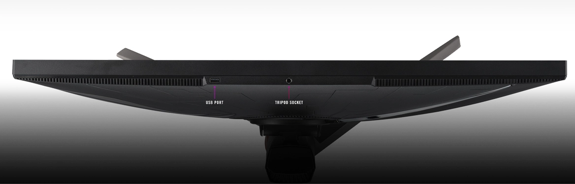 ROG Swift PG32UQXR має тонку рамку, що ідеально підходить для багатоекранних конфігурацій. Мінімалістичний дизайн та продумана ергономіка створюють сучасний та акуратний вигляд робочого місця — чи то гра, чи робота з контентом.