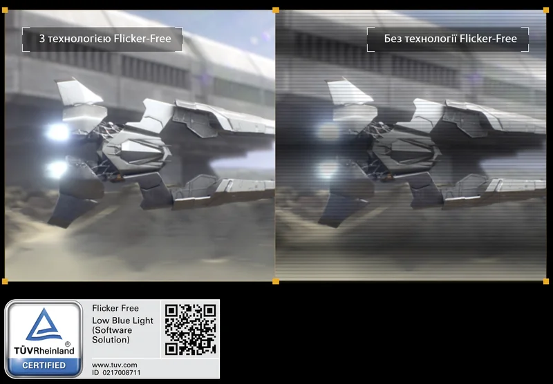 Для зменшення ймовірності появи неприємних симптомів, пов’язаних із втомою очей, фахівці ASUS розробили технологію Flicker-Free, яка зменшує мерехтіння екрана.