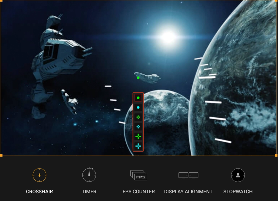 Ексклюзивна гаряча клавіша ASUS GamePlus пропонує внутрішньоігрові покращення, розроблені за участю професійних геймерів, для підвищення ваших навичок та ігрового процесу. Функції GamePlus включають Crosshair (перехрестя прицілу), Timer (таймер), FPS Counter (лічильник кадрів) та Display Alignment (вирівнювання дисплея).