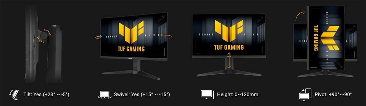 Ергономічна підставка пропонує регулювання нахилу (Tilt: +23 ° -5 °), повороту (Swivel: +15 ° -15 °), висоти (Height: 0 120 мм) та повороту в портретний режим (Pivot: +90 ° -90 °). Дисплей також сумісний із кріпленнями VESA для настінного монтажу.