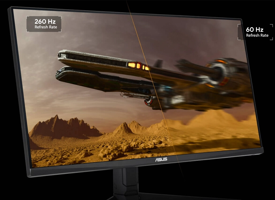 Монітор ASUS TUF Gaming VG27AQML1A підтримує частоту оновлення 260 Гц , забезпечуючи виключно плавне та чітке зображення навіть у найдинамічніших іграх. У порівнянні зі стандартними 60 Гц, різниця в плавності помітна відразу - кожен кадр відображається точно і без розмиття.