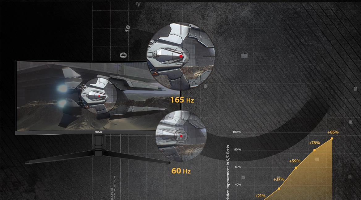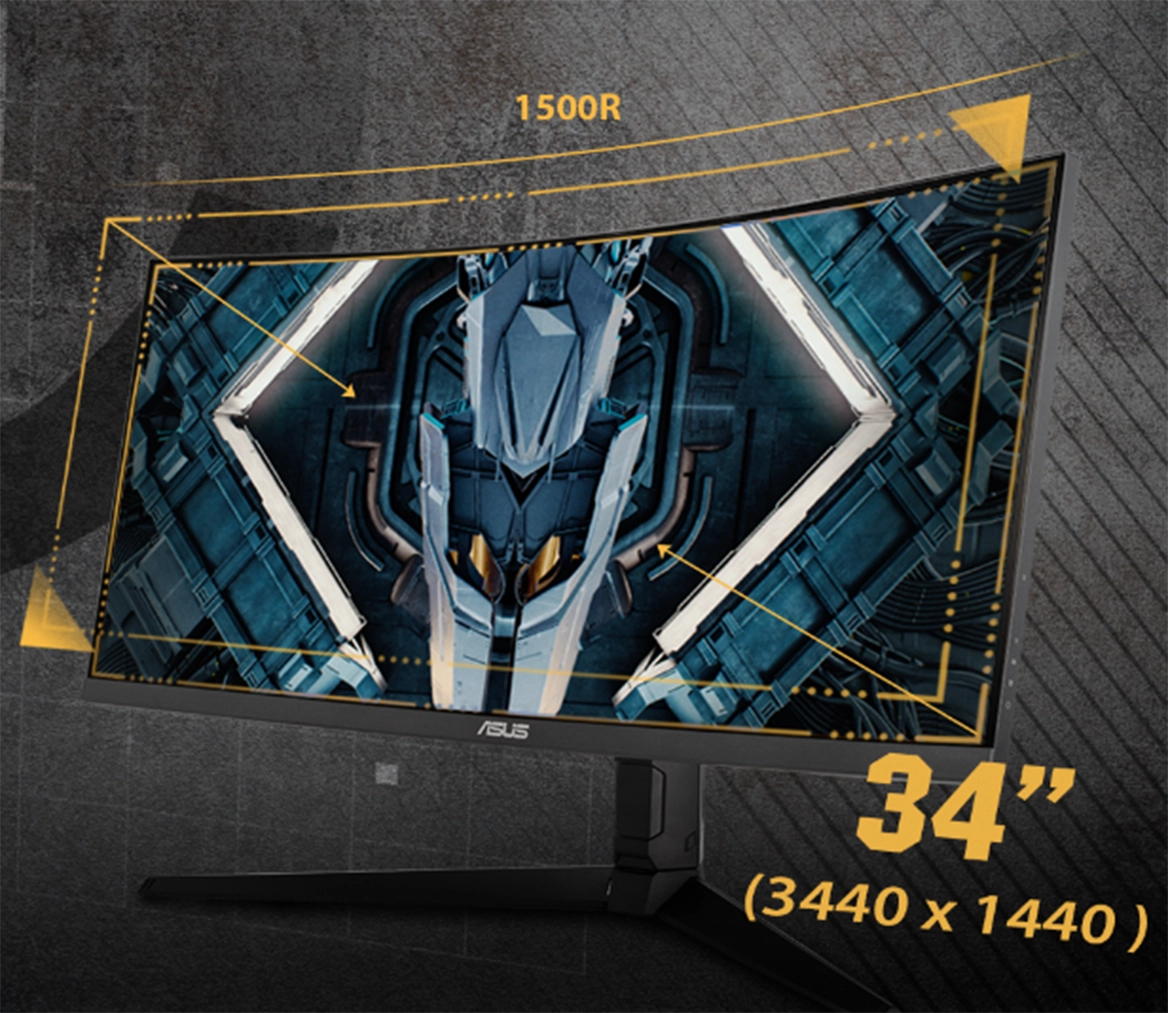 TUF Gaming VG34VQL1B – вигнутий 34-дюймовий UWQHD-монітор (3440×1440) з частотою оновлення 165 Гц , створений для максимального занурення в ігровий процес. Він поєднує виняткову чіткість, насичені кольори та широкий огляд завдяки вигнутому екрану з радіусом 1500R .