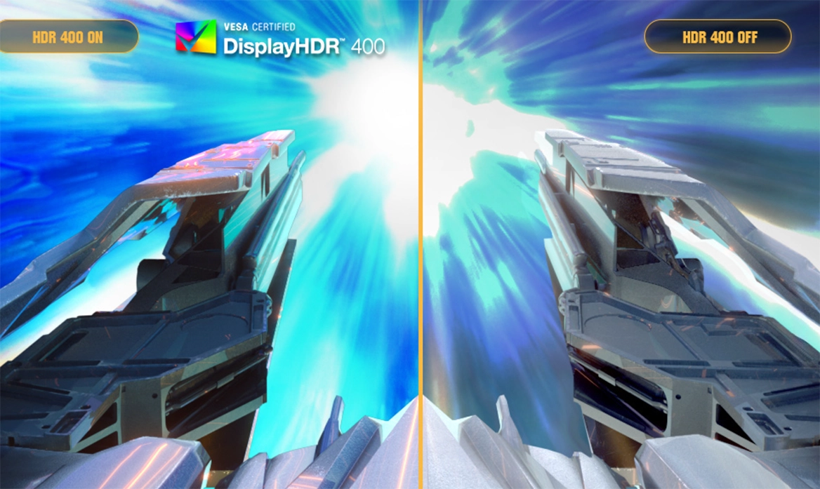Монітор сертифікований за стандартом VESA DisplayHDR 400 , забезпечуючи яскраві та контрастні сцени з природною перенесенням кольорів. HDR-контент виглядає насичено і реалістично - від найтемніших до найяскравіших ділянок зображення.