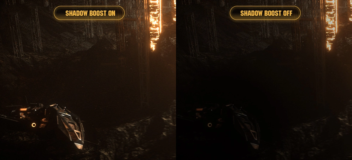 Технологія Shadow Boost підсвічує темні ділянки зображення, не пересвічуючи яскравих областей. Це допомагає швидше помічати супротивників і деталі навіть у тінях – особливо корисно у шутерах.