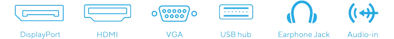 DisplayPort, HDMI і VGA дозволяють одночасно підключати настільний комп'ютер/ноутбук та інший пристрій. Таким чином, немає необхідності часто підключати і змінювати з'єднання. Чотири легкодоступні порти USB-A низхідного типу забезпечують сумісність з широким спектром пристроїв. Також є прохідний порт для підключення навушників.
