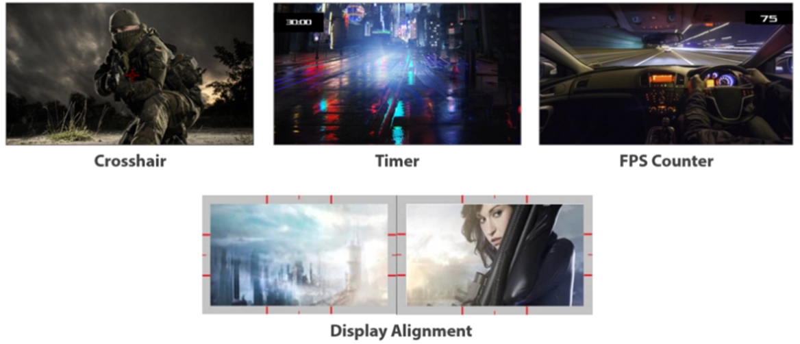 ASUS VY249HF-W оснащений вбудованими ігровими інструментами GamePlus , включаючи приціл (Crosshair), таймер, лічильник FPS та вирівнювання дисплея. Ці функції допомагають покращити точність та зручність під час гри.