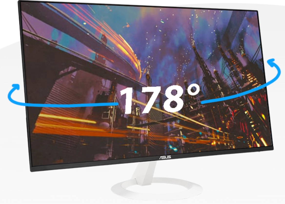 IPS-панель з роздільною здатністю Full HD забезпечує яскраві кольори та стабільне зображення під кутом до 178° по горизонталі та вертикалі. Зображення виглядає однаково якісно практично з будь-якої точки перед екраном.