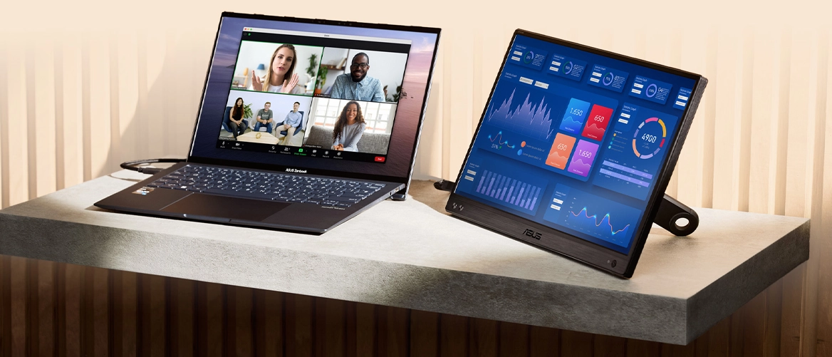 ASUS ZenScreen MB166CR створений для професіоналів, які цінують мобільність та естетику. Легкий і тонкий корпус з елегантним металевим оздобленням робить його ідеальним супутником - будь то зустріч, відрядження або робота в затишній кав'ярні.