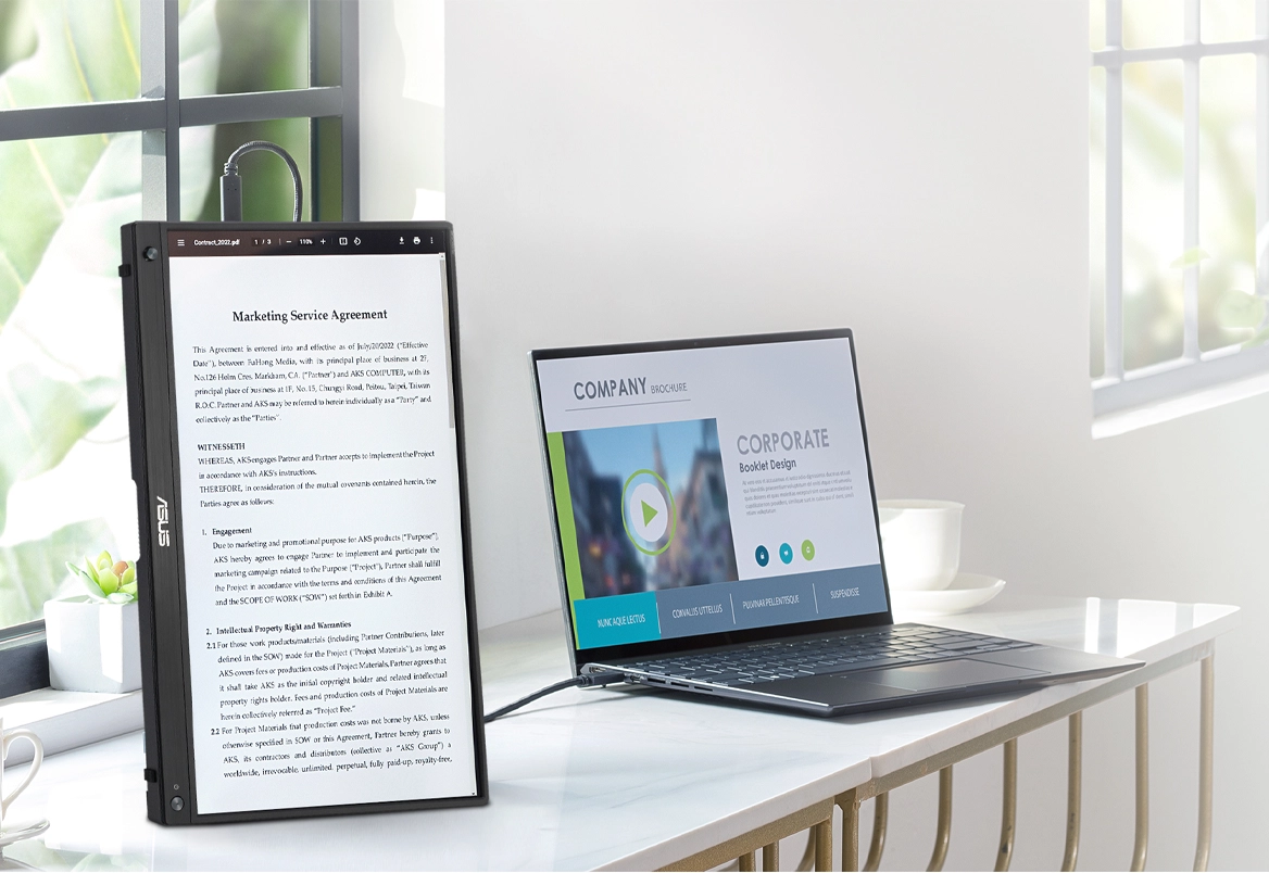 ZenScreen MB16AHG оснащений універсальною підставкою, яка дозволяє встановлювати екран у горизонтальній або вертикальній орієнтації. Це ідеально для презентацій, читання документів, таблиць чи роботи з кодом.