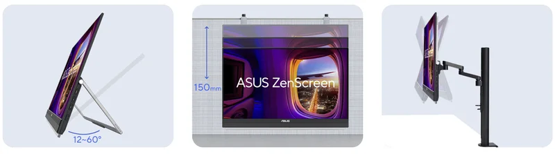 Ручка для перенесення виконує подвійну функцію: вона може слугувати зручною підставкою для надійного встановлення ZenScreen MB229CF під кутом від 12 до 60° на будь-якій плоскій поверхні, забезпечуючи комфортні кути огляду. Вона ідеально підходить для роботи в багатозадачному режимі або для демонстрації екрана невеликим групам.
