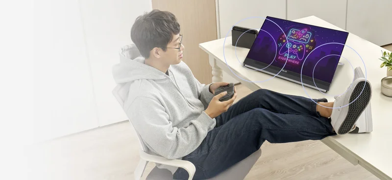 ZenScreen MB229CF більший за інші портативні монітори, а його 22-дюймова безрамкова IPS-панель із роздільною здатністю Full HD забезпечує чудове зображення з широкими кутами огляду (178°).