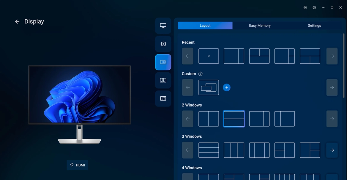 Оцініть єдину інноваційну програму Dell для оптимізації продуктивності всього вашого робочого простору Dell PC. Easy Arrange розміщує програми на екранах за допомогою встановлених розділів і налаштовує до п'яти вікон, покращуючи багатозадачність. Easy Arrange Memory зберігає та відновлює профілі програм вручну, за розкладом або під час запуску. Працюйте з комфортом вдень та вночі. Автоматизуйте налаштування яскравості та контрастності відповідно до вашого розкладу. Заощаджуйте час та підвищуйте ефективність ІТ за допомогою Dell Device Management Console для масштабного керування парком периферійних пристроїв Dell із єдиної хмарної консолі. Відкрийте розширені функції інтерфейсу командного рядка Dell Display and Peripheral Manager.