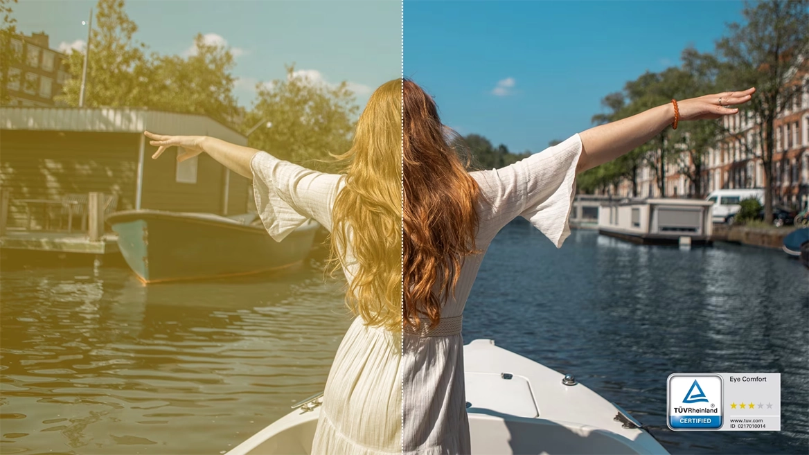 Випробуйте високу частоту оновлення 100 Гц у своїй роботі з якістю перегляду, сертифікованим TUV Rheinland (3 зірки), у поєднанні з технологією ComfortView Plus.