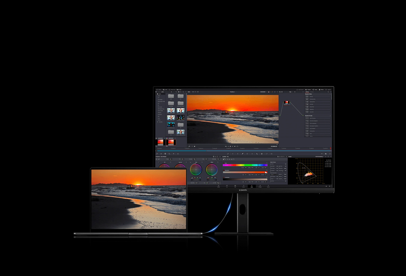 После подключения монитора к ноутбуку с помощью прилагаемого кабеля USB-C дополнительные порты на задней панели монитора можно использовать для подключения периферийных устройств, таких как мышь и USB-накопитель, что позволяет снизить нагрузку на ноутбук. Наслаждайтесь организованным творческим рабочим пространством.