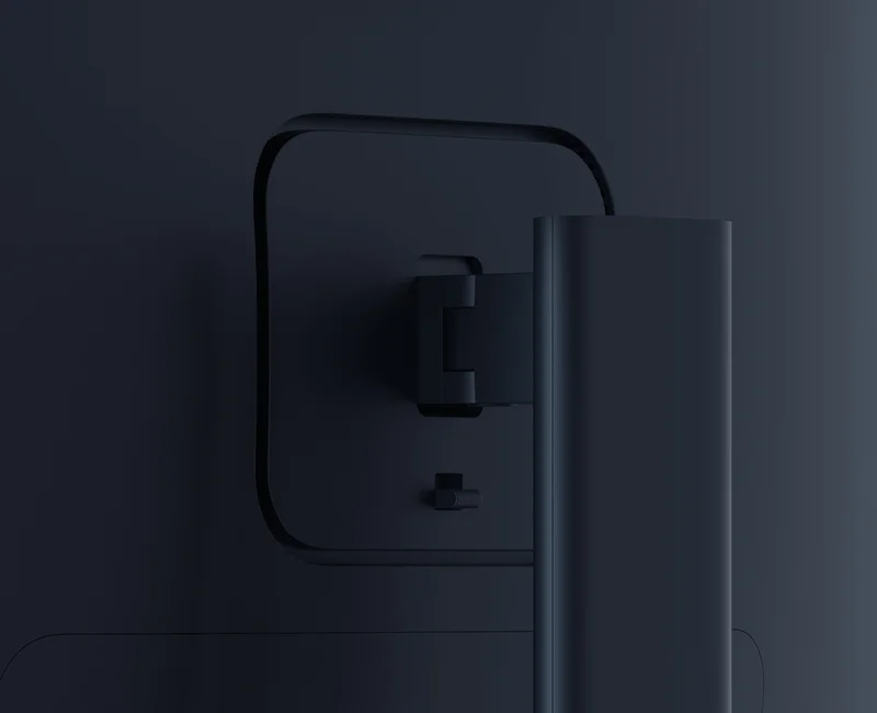 Монітор і підставка сконструйовані таким чином, що весь процес складання вимагає тільки одного швидкознімного кріплення. Магнітні кріплення створюють враження, що монітор і підставка є одним цілим, а також спрощують складання.