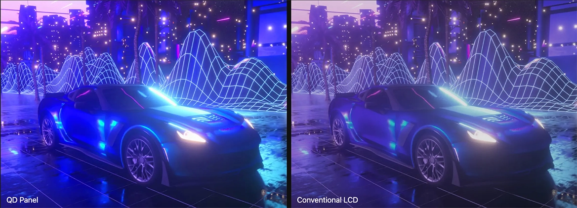 Технологія квантових точок (Quantum Dot) створює чарівне зображення з палітрою більше мільярда кольорів. Кожен кадр наповнюється життям і приголомшливою чіткістю, стираючи грань між грою та реальністю.