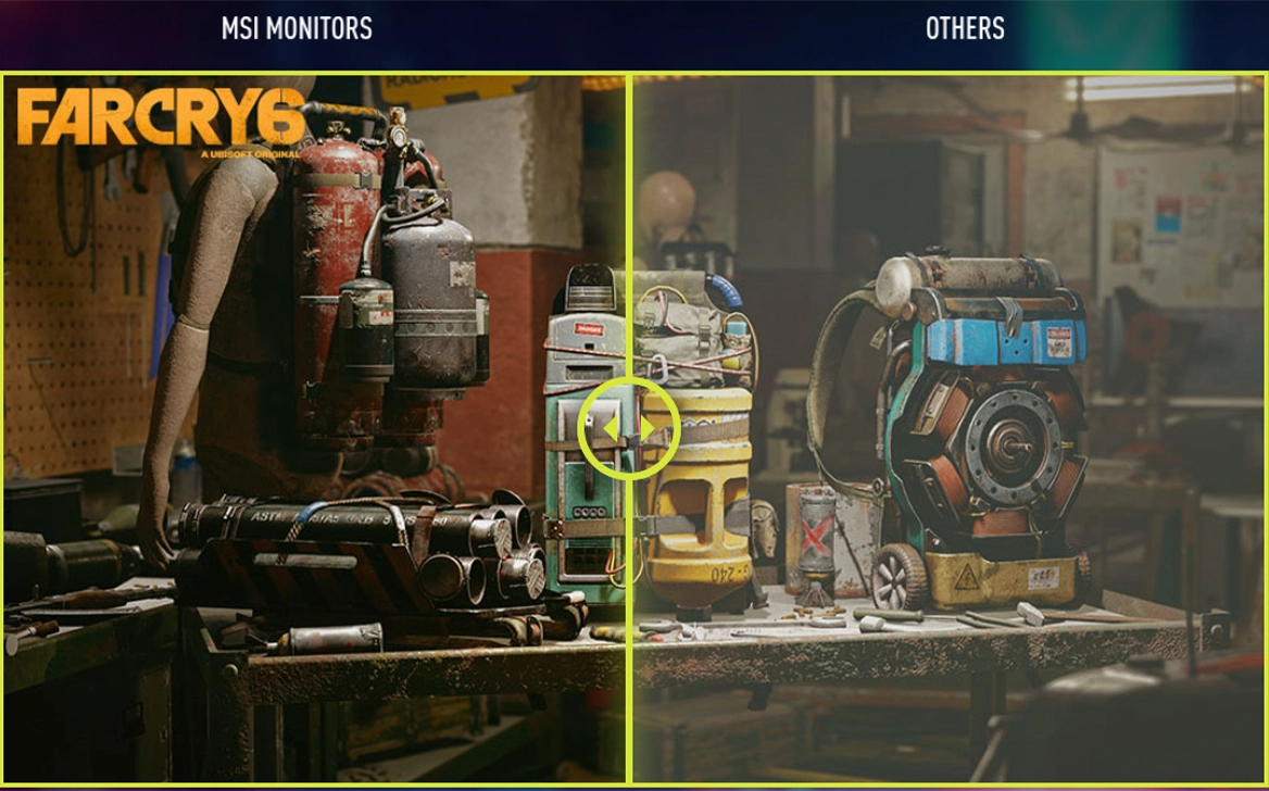 Ігрові монітори MSI відрізняються розширеним колірним охопленням у порівнянні зі стандартними моделями. Ігрові світи виглядають більш насиченими, деталізованими та реалістичними, забезпечуючи максимальне занурення в атмосферу того, що відбувається на екрані.