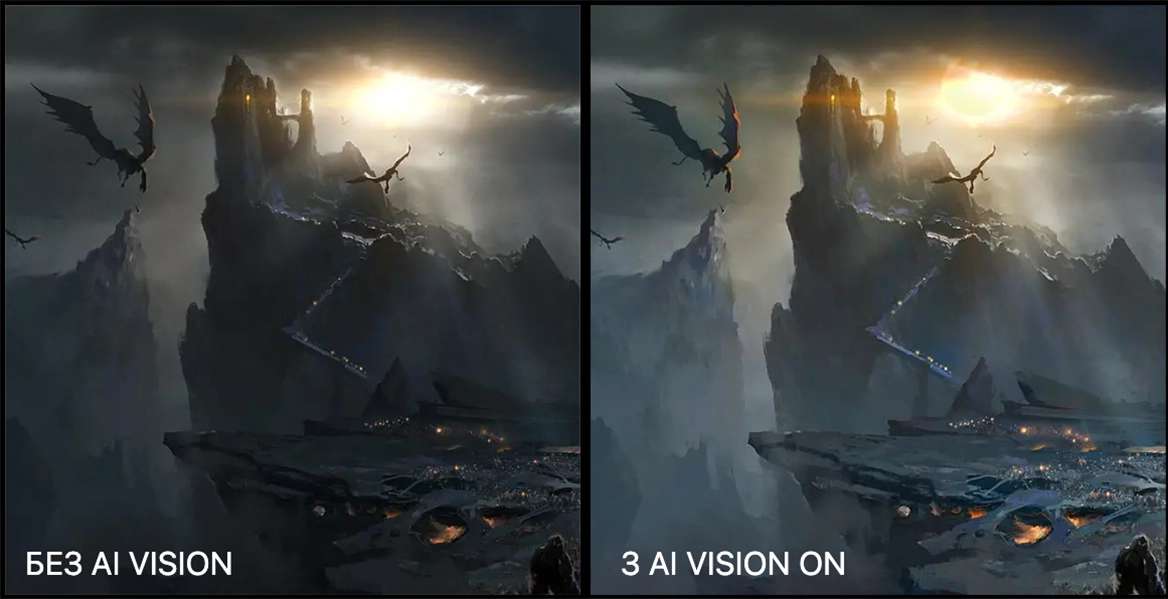 Нова технологія AI Vision використовує алгоритми штучного інтелекту не тільки для опрацювання деталей у темних ділянках сцени, але й для підвищення загальної яскравості та насиченості кольорів, роблячи картинку соковитішою та інформативною.