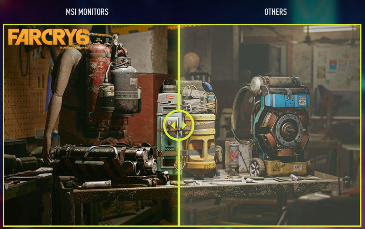 Ігрові монітори MSI відрізняються розширеним колірним охопленням у порівнянні з традиційними моделями. Насичені відтінки та висока деталізація роблять ігрові світи більш реалістичними, забезпечуючи максимальне занурення в атмосферу того, що відбувається.