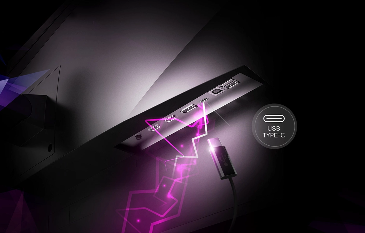 Вбудований порт USB Type-C підтримує передачу відеосигналу, підключення периферії та зарядку підключених пристроїв потужністю до 65 Вт, що дозволяє позбутися зайвих дротів на столі.
