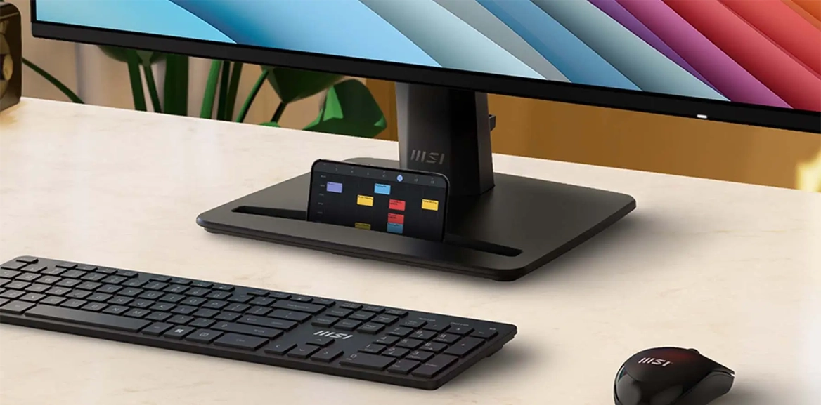 Підтримуйте ідеальний порядок на робочому столі завдяки спеціальному слоту у підставці монітора. Це зручне місце для зберігання дрібних предметів, таких як смартфон, кабелі або адаптери, які завжди мають бути під рукою.