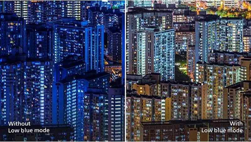 Дослідження показали, що так само як ультрафіолетові промені можуть спричинити ураження очей, короткі промені синього світла зі світлодіодних дисплеїв можуть спричинити ураження очей та поступове погіршення зору. Режим Philips LowBlue, створений для доброго самопочуття, використовує розумну програмну технологію для зменшення шкідливого впливу коротких синіх світлових хвиль.