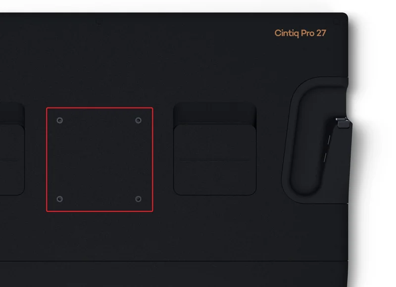Wacom Cintiq Pro 27 дозволяє використовувати вашу улюблену підставку або настільне кріплення для максимально комфортної роботи. Завдяки кріпленню VESA 100 підтримується широкий спектр кріплень сторонніх виробників, таких як кронштейни для моніторів, настільні кріплення та багато іншого. Якщо ви хочете використовувати кріплення стороннього виробника, переконайтеся, що воно відповідає наступним вимогам: