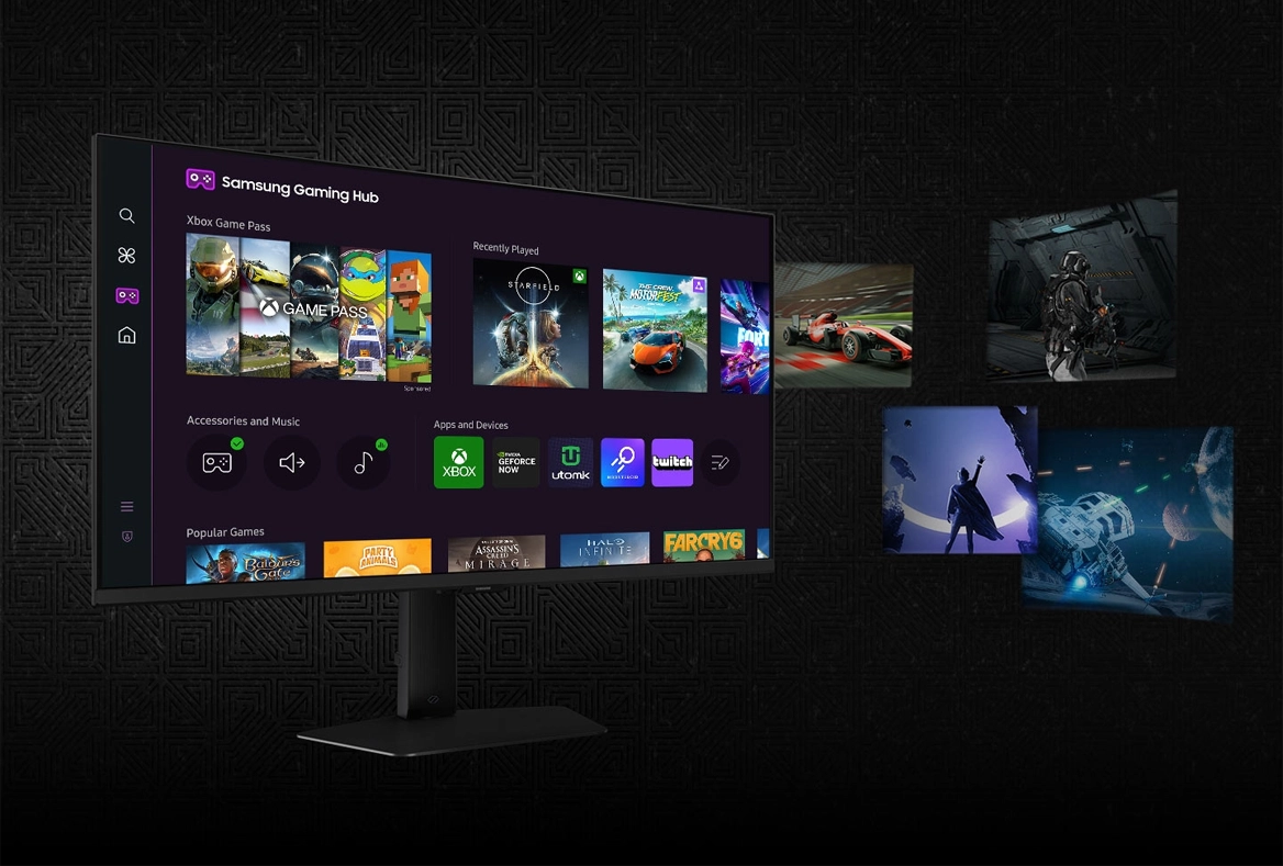 Gaming Hub забезпечує миттєвий доступ до кращих потокових сервісів та ваших улюблених консолей. Плавне зображення та чуйний ігровий процес забезпечуються завдяки передовій технології потокової передачі ігор від Samsung без завантаження – просто увімкніть та грайте.