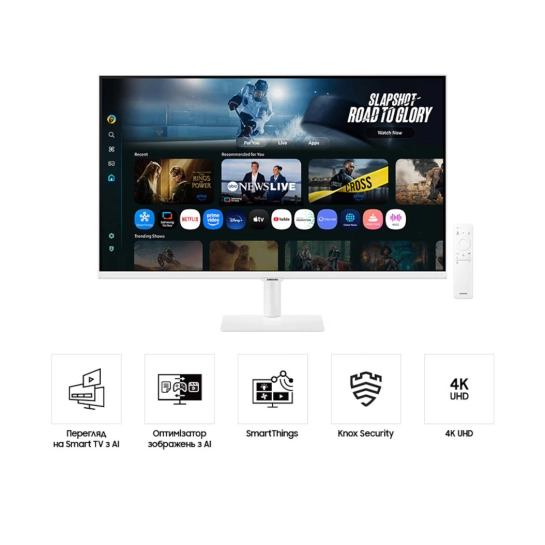 Підключайте пристрої Apple бездротовим способом до Smart-монітора та переглядайте вміст на великому екрані. Завдяки інтеграції AirPlay можна легко віддзеркалювати програми та переглядати медіафайли, документи та веб-сайти з iPhone, iPad або Mac.